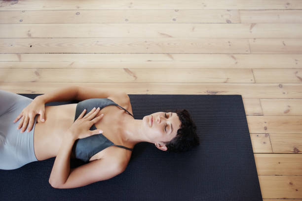 Shot of a beautiful young woman doing yoga at home